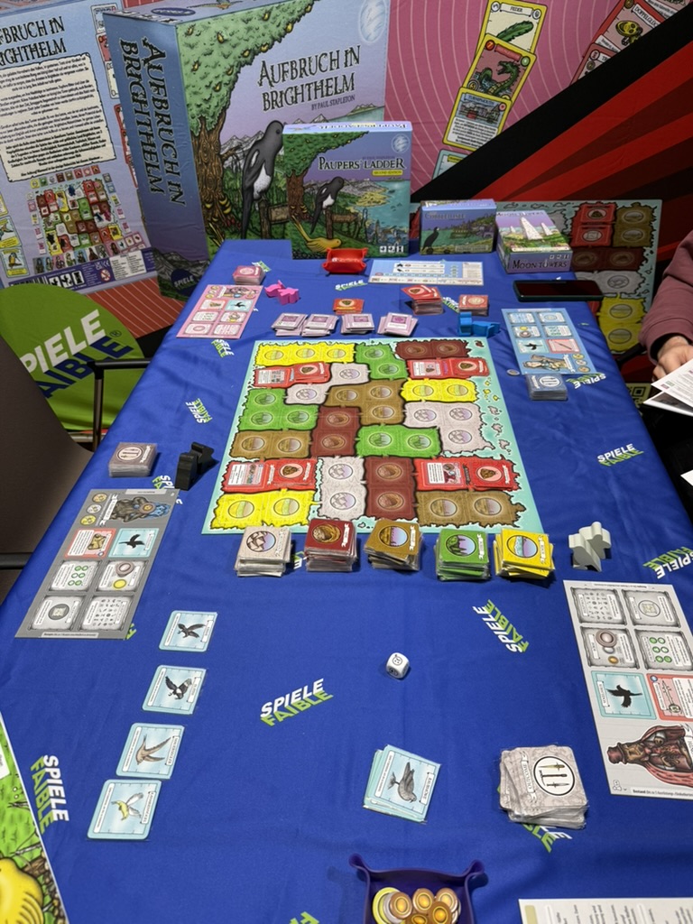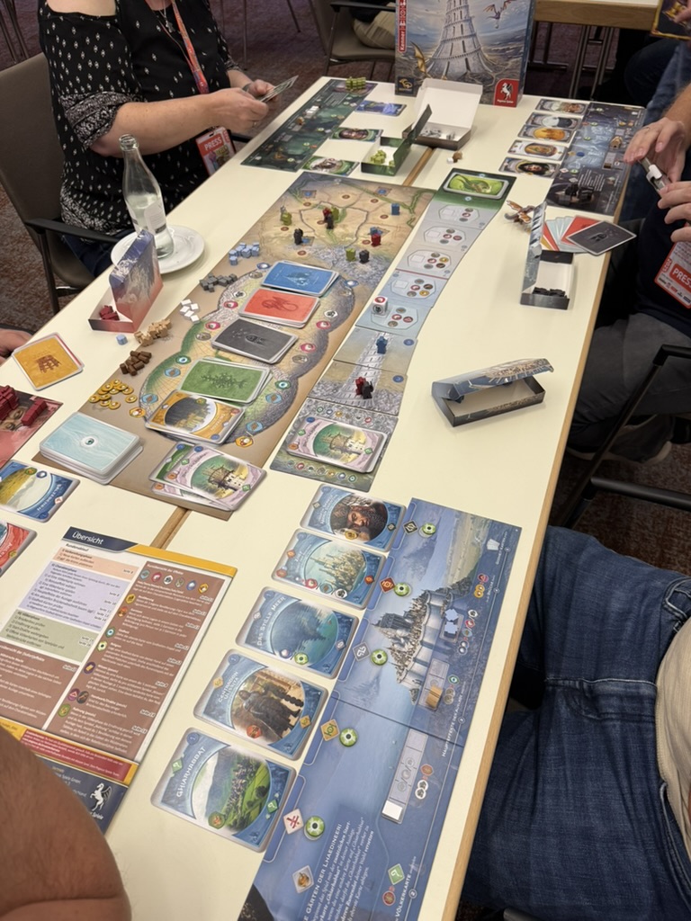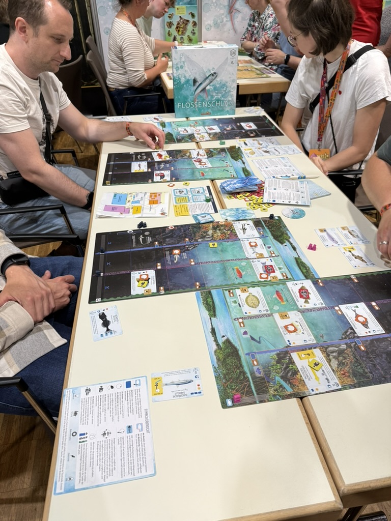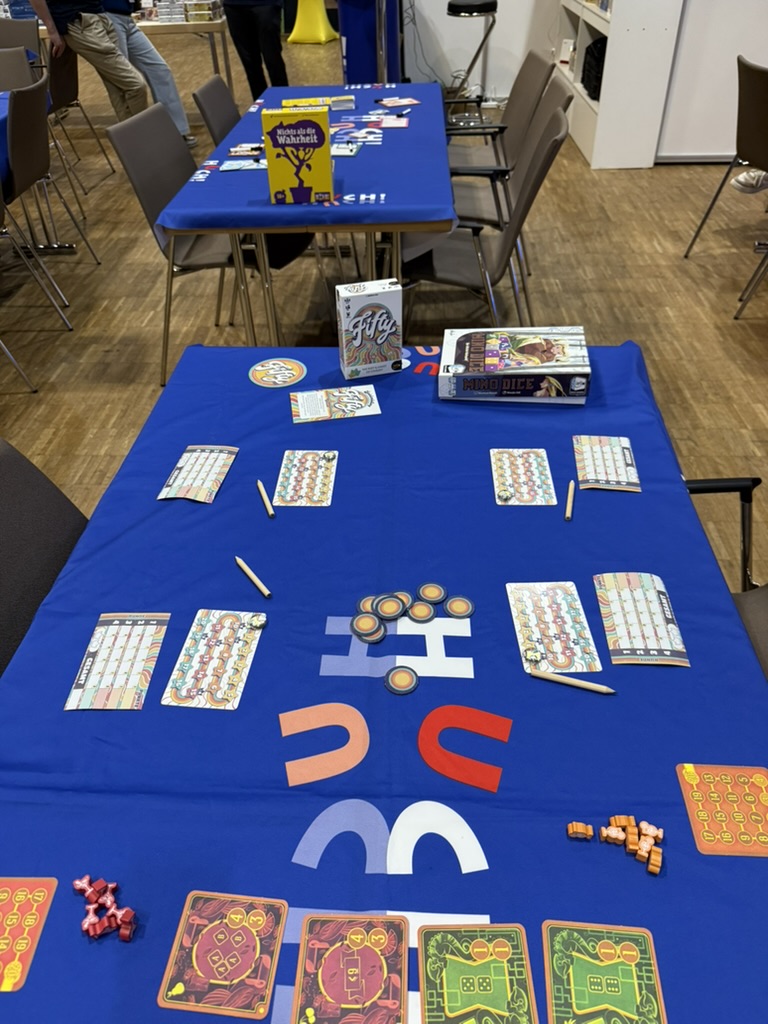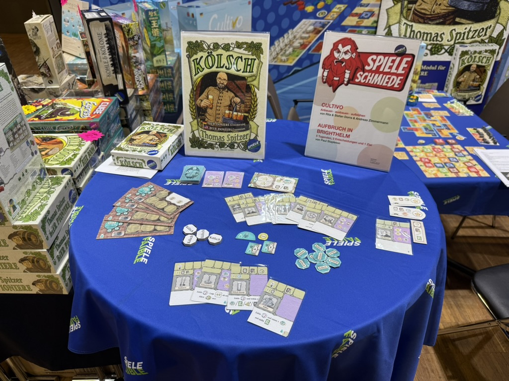 Der Flohmarkt wurde dieses Jahr erstmals in Zeit-Slots organisiert – mehr Überblick, weniger Gedränge. Danach ging’s in die Hallen. Hier die Spiele und Verlage in der Reihenfolge meines Rundgangs: