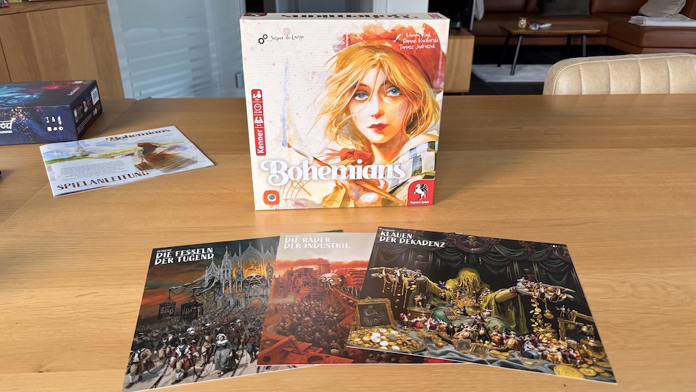 Im Brettspiel Bohemians sind wir junge Künstler:innen, die sich nach dem Erfolg sehnen, sei es als Schreibende, Malende oder in der Bildhauerei. Wir leben als Bohemians in Paris. Das Leben genießen wir, arbeiten wo nötig und sind doch von viel Leid geplagt, wenn wir am Ende angekommen sind, dabei wird nur eine Person von uns genug Erfolge angesammelt haben, um mit einem Sieg davongehen zu können.