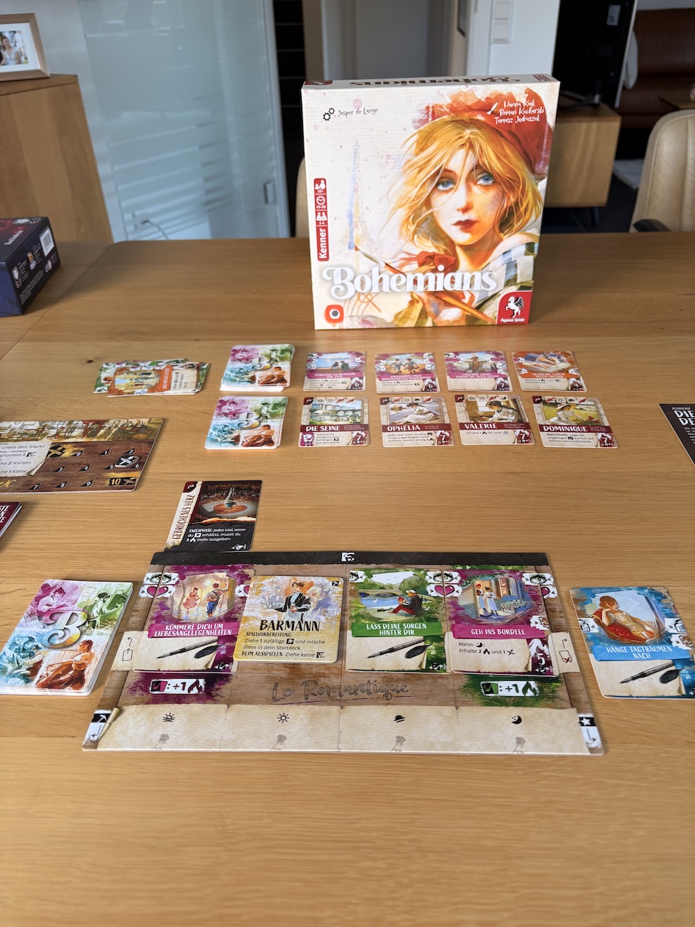 Bohemians ist ein atmosphärischer und thematischer Deckbuilder, hier geht es mehr ums Erleben als ums effiziente und siegoptimierte Spielen. Mechanik, Kunst und Leid machen den Reiz aus, erfordern aber Geduld und Bereitschaft sich auf den erzählerischen Moment einzulassen.