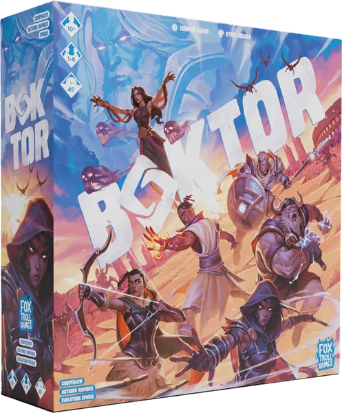 Boktor ist ein kooperatives Abenteuerspiel für 1–6 Spielende mit Dungeon-Crawling, taktischem Kampf und Charakterfortschritt. Wir übernehmen legendäre Helden, die modulare Dungeons erkunden, um Wellen von Feinden zu überstehen und den finalen Tyranten zu besiegen, bevor der Vortex alles zerstört. Jede Partie ist eine eigenständige Mission mit schnellem Setup, Heldenbrettern für Energie und Gesundheit sowie endlosen Varianten durch modulare Elemente. Entscheidungen wie Rush zum Boss oder Stärkensammlung erhöhen die Spannung. Epische Bosskämpfe fordern Teamwork in unter 60 Minuten. Einfach zu lernen, schwer zu meistern – ideal für Familien und Hardcore-Gamer.