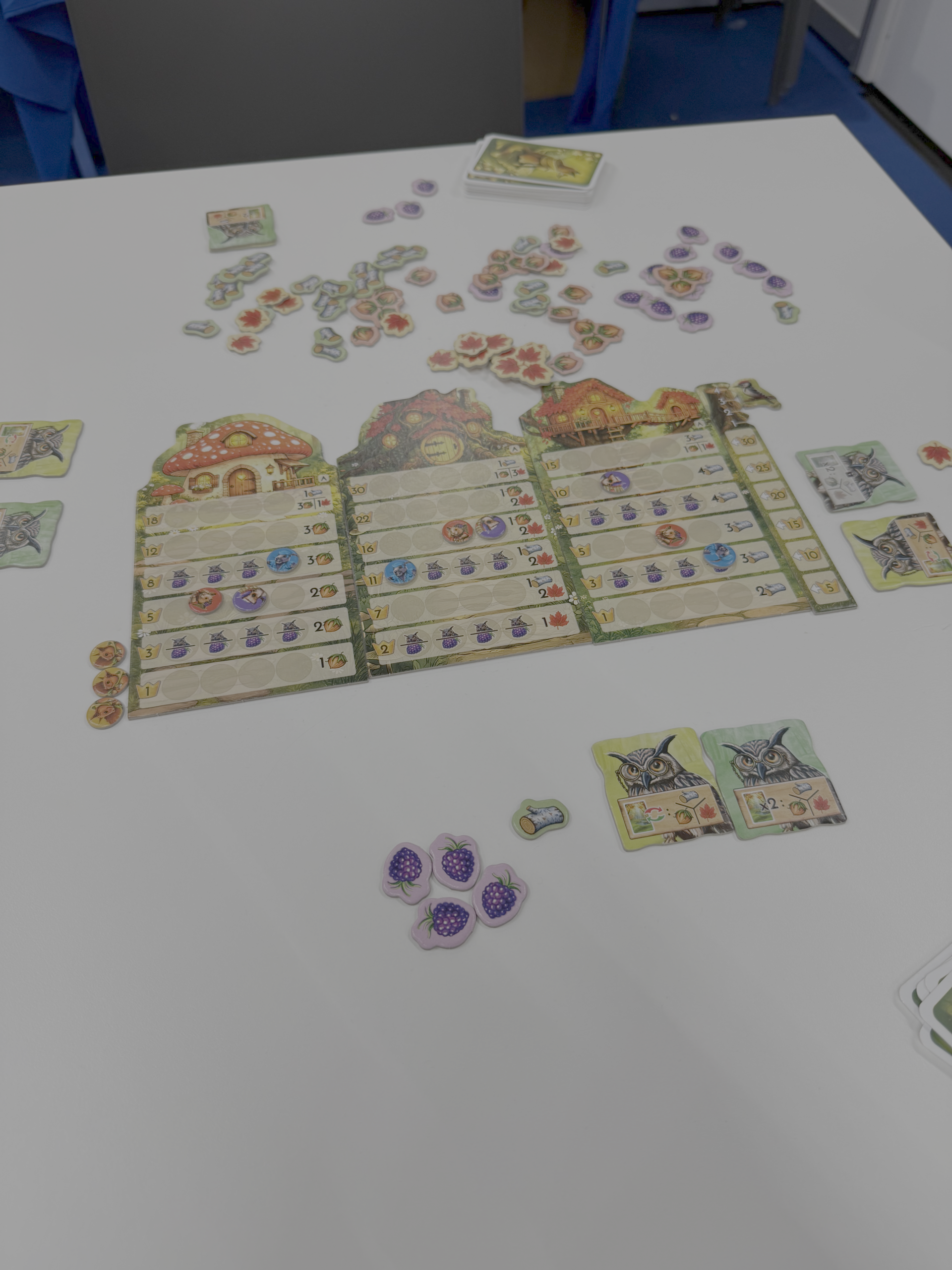 Nach vier Runden gewinnt, wer das punktreichste Dorf aufgebaut hat. Dazu addieren wir die Punkte der erklommenen Leisten sowie unsere persönlichen Boni, die wir uns in Form von Brombeeren im Laufe des Spiels freigespielt haben.