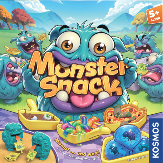 In diesem Kinderspiel sind sechs freche Monster ständig hungrig, aber jedes hat ein ganz bestimmtes Lieblingsessen. In der Mitte liegen viele verdeckte Pfännchen, die nach und nach aufgedeckt werden. Wer am Zug ist, dreht ein Pfännchen um und überlegt, welchem Monster das gezeigte Gericht schmecken würde, etwa schleimige Würmer oder Socken Pizza. Wird das Futter dem richtigen Monster gegeben, gibt es als Belohnung eine glänzende Monstermünze. So entsteht ein witziges Merk und Zuordnungsspiel, bei dem sich alle gut merken wollen, wer was am liebsten mampft.