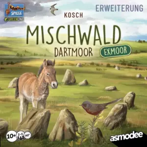 Mischwald: Dartmoor – Exmoor ist eine Erweiterung für Mischwald: Dartmoor. Sie bringt über 50 neue Karten ins Spiel und erweitert damit die Auswahl an Tieren, Pflanzen und Kombinationsmöglichkeiten, ohne den Ablauf grundlegend zu verändern.