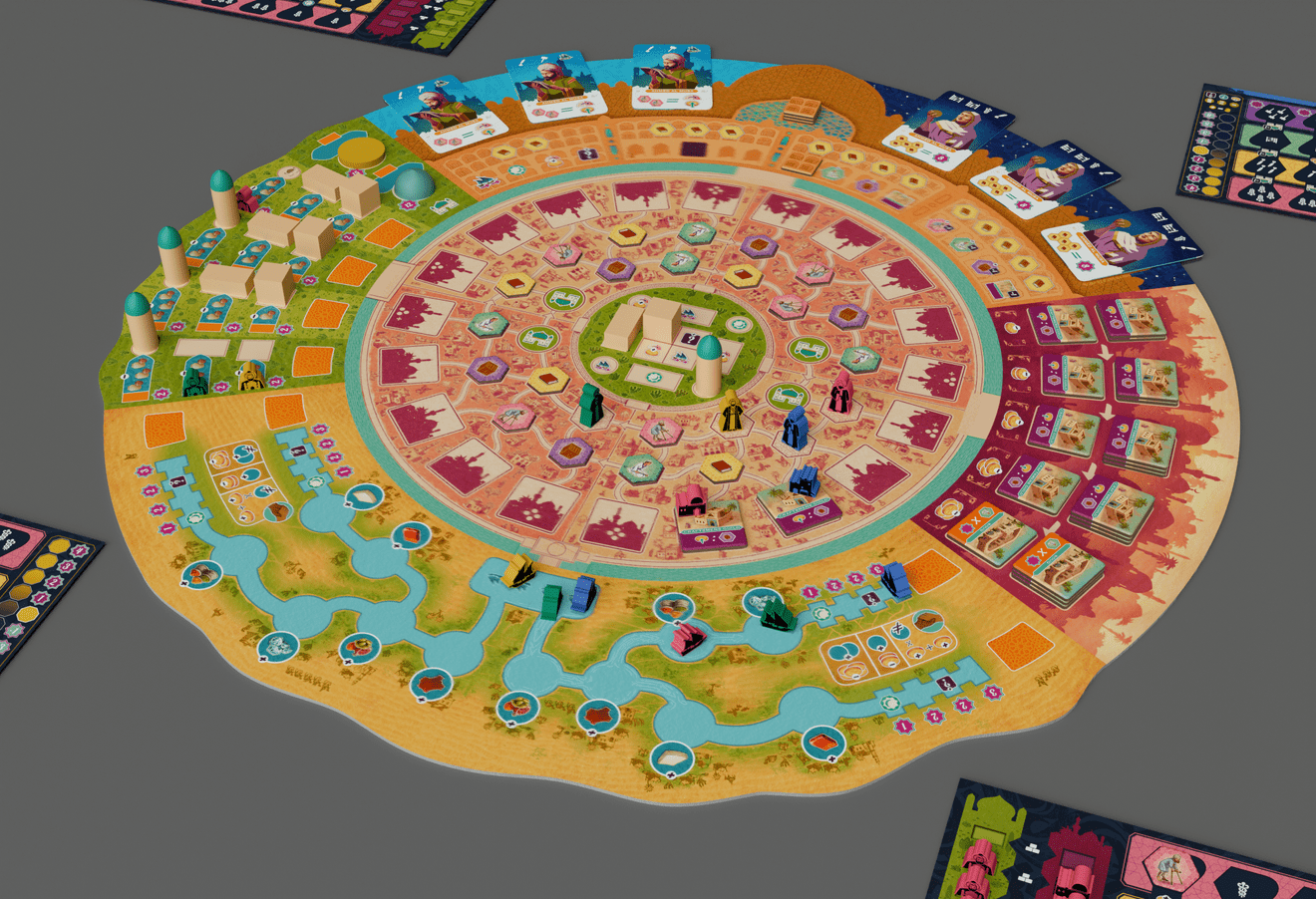 Das Spiel kombiniert Rondellbewegung, Handmanagement und modulare Wertungselemente. Das Spiel endet, wenn alle Karten ausgespielt wurden; gewertet wird unter anderem nach erfüllten Kriterien im Palast, gesammelten Artefakten, Gebäudestufen und Nachtkarten.