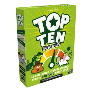 Mit Top Ten Adventures erwartet euch ein epischer Ableger des Party-Klassikers! Dieses Mal erlebt ihr 80 verschiedene Abenteuer mit fünf aufeinanderfolgenden Themen, die eine zusammenhängende Geschichte erzählen. Von Runde zu Runde, in denen der Käpten die absurden Antworten seiner Mitspieler in die richtige Reihenfolge bringen muss, erkundet ihr einen neuen Abschnitt des Abenteuers. Dabei müsst ihr euch manchmal auf die Antworten beziehen, die ihr zuvor gegeben habt, was für viele aberwitzige Momente sorgt. Macht euch bereit für Lachtränen und Zwerchfell-Muskelkater mit Top Ten Adventures!