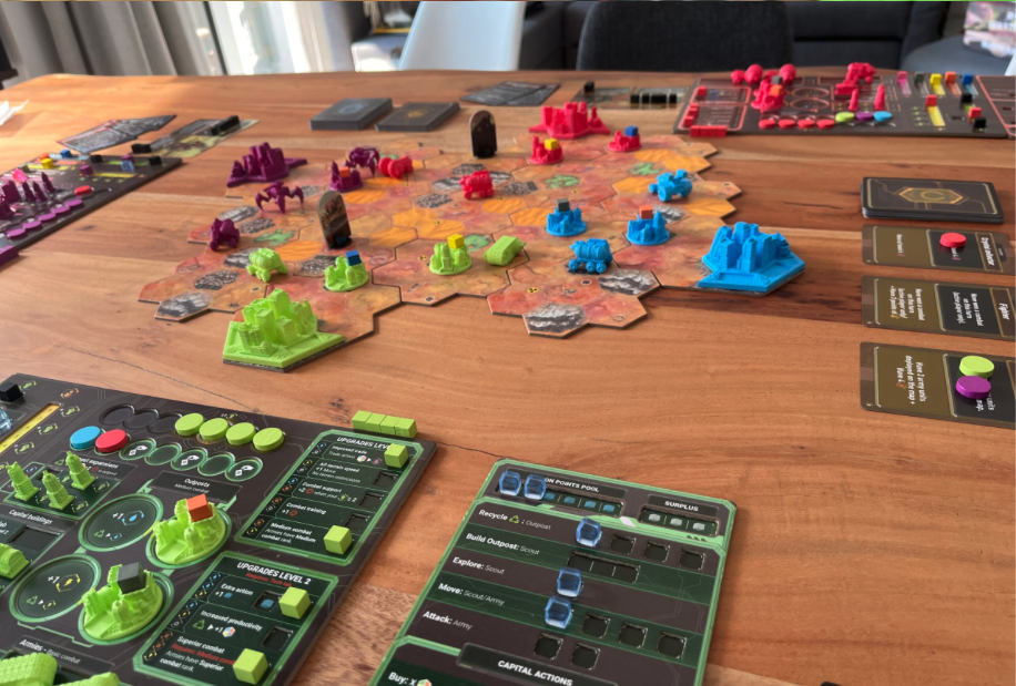 Von eurer Hauptstadt aus erkundet ihr das Ödland, entdeckt neue Gebiete und errichtet Außenposten, um Materialien zu recyceln. Die gewonnenen Ressourcen nutzt ihr, um Gebäude und Einheiten zu erschaffen, Technologien zu verbessern und eure Strategie anzupassen. Jeder Zug zählt: Ihr entscheidet, ob ihr handeln, angreifen, aufklären oder neue Gebiete sichern wollt.