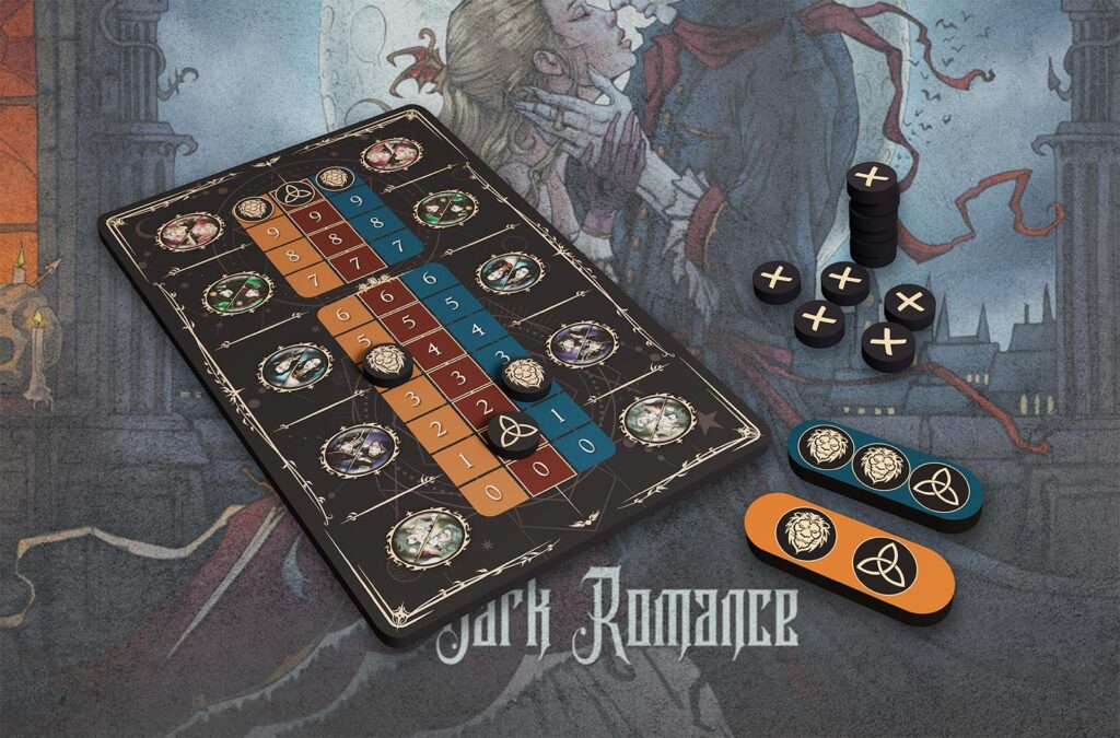 Dark Romance ist ein Deduktionsspiel für 2 Personen, das in einer viktorianischen Welt angesiedelt ist. Wir übernehmen die Rollen unterschiedlicher Charaktere mit individuellen Zielen und verfolgen dabei entweder den Weg zu echter Nähe oder den Versuch, das Gegenüber auszunutzen. Über Szenenkarten werden Begegnungen und Ereignisse ausgelöst, die den Ablauf strukturieren und unterschiedliche taktische Möglichkeiten eröffnen.