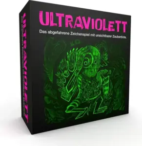 In Ultraviolett bist du als Künstler gefragt, absurde Sätze mit einem UV-Stift in unsichtbarer Tinte zu zeichnen. Erst wenn die Zeichnungen mit UV-Licht sichtbar gemacht werden, versuchen die Mitspielenden herauszufinden, welcher Satz gemeint ist.