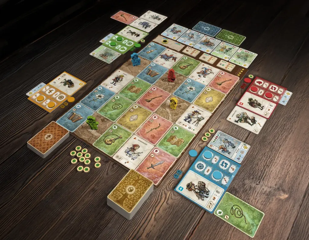 Das Spiel basiert auf einem Bewegungs-Puzzle-Mechanismus: In jedem Zug kombinierst du die Fähigkeiten deiner Gruppe, um über die Karte zu ziehen und die richtigen Karten einzusammeln. Mit gesammelten Gegenständen und Gefährten kannst du Abenteuerkarten erfüllen, die dir Siegpunkte und dauerhafte Verbesserungen bringen.