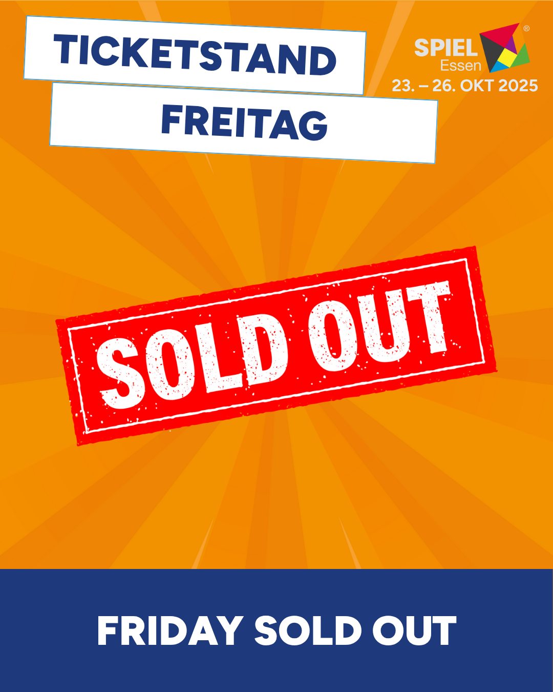 Inzwischen sind zwei von vier Tagen der SPIEL 2025 ausverkauft. Für Freitag und Samstag gibt es leider keine Karten mehr.