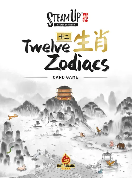 In der Welt von Steam Up erscheint mit Twelve Zodiacs ein eigenständiges Kartenspiel. Jeder Spielende beginnt mit acht Handkarten und kann entweder Karten ausspielen oder passen. Dabei muss das Kartenset höher sein, als das vorher gelegte. Danach wird immer auf acht Karten aufgezogen. Beim passen kann ich eine der ausgespielten Karten auf die Hand nehmen, der vorherige gewinnt eine Eierkarte (diese entscheiden über den Sieg der jeweiligen Runde).
