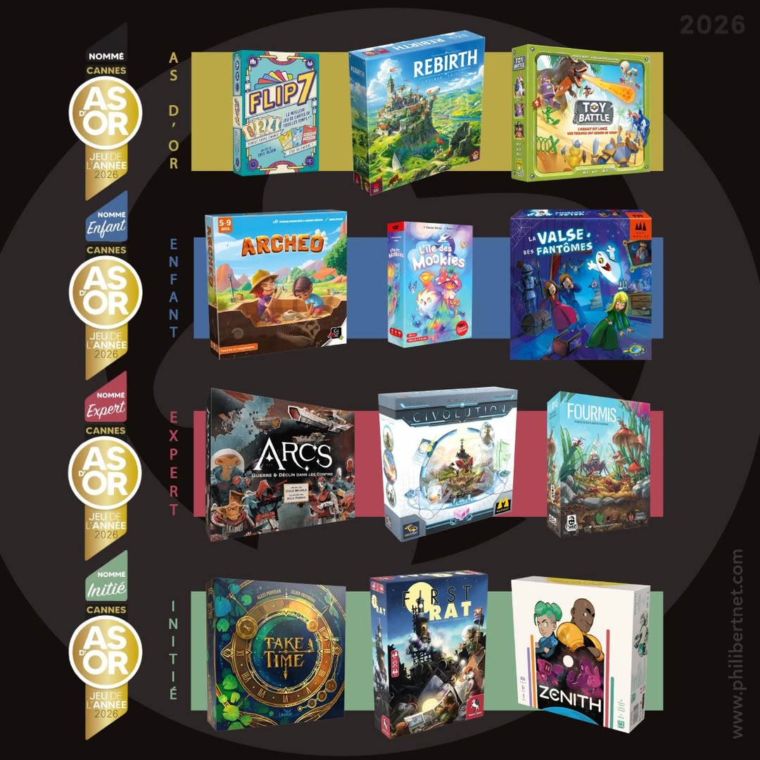 Für den As d’or 2026 (wichtigster französischer Brettspielpreis) wurden am 27. Januar 2026 die Nominierungen in vier Brettspiel-Kategorien bekannt gegeben.