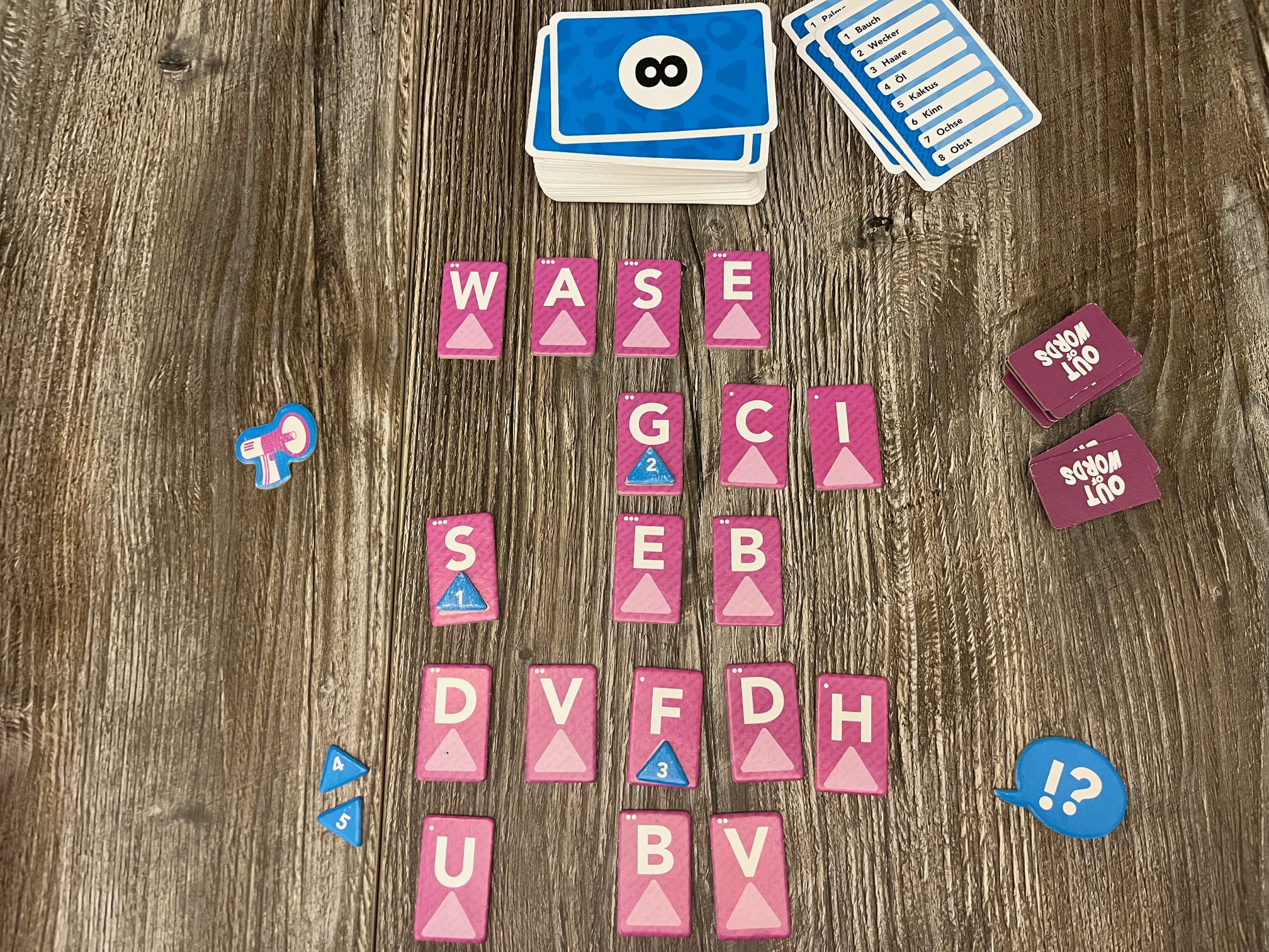 Habt Ihr den Begriff erraten, dann erhaltet ihr die Begriffskarte als Punkt und der Buchstabenchip in der Tischmitte wird durch einen neuen ersetzt.