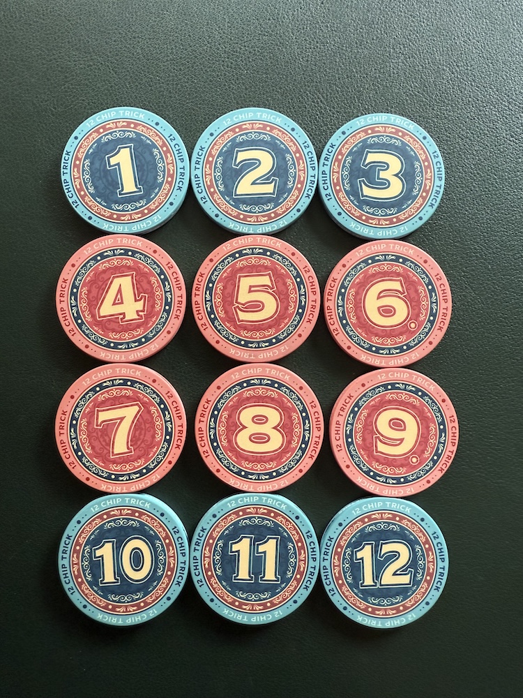 Manchmal braucht es gar nicht viel, um ein überraschend intensives Spielerlebnis zu schaffen. 12 Chip Trick ist ein solches Spiel: Ursprünglich 2022 vom japanischen Autor Root im Selbstverlag veröffentlicht, kam es über Mandoo Games nach Europa und wurde 2024 schließlich von Wonderbow Games für den deutschsprachigen Markt lokalisiert.