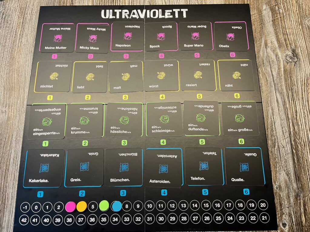 Mit dem Brettspiel Ultraviolett gibt es nun einen weiteren Vertreter in der Kategorie “Zeichenspiele” auf dem Markt, das sich in den wesentlichen Punkten nicht von den oben genannten Beispielen unterscheidet: Ich muss etwas malen und die anderen sollten es im Idealfall richtig erraten.