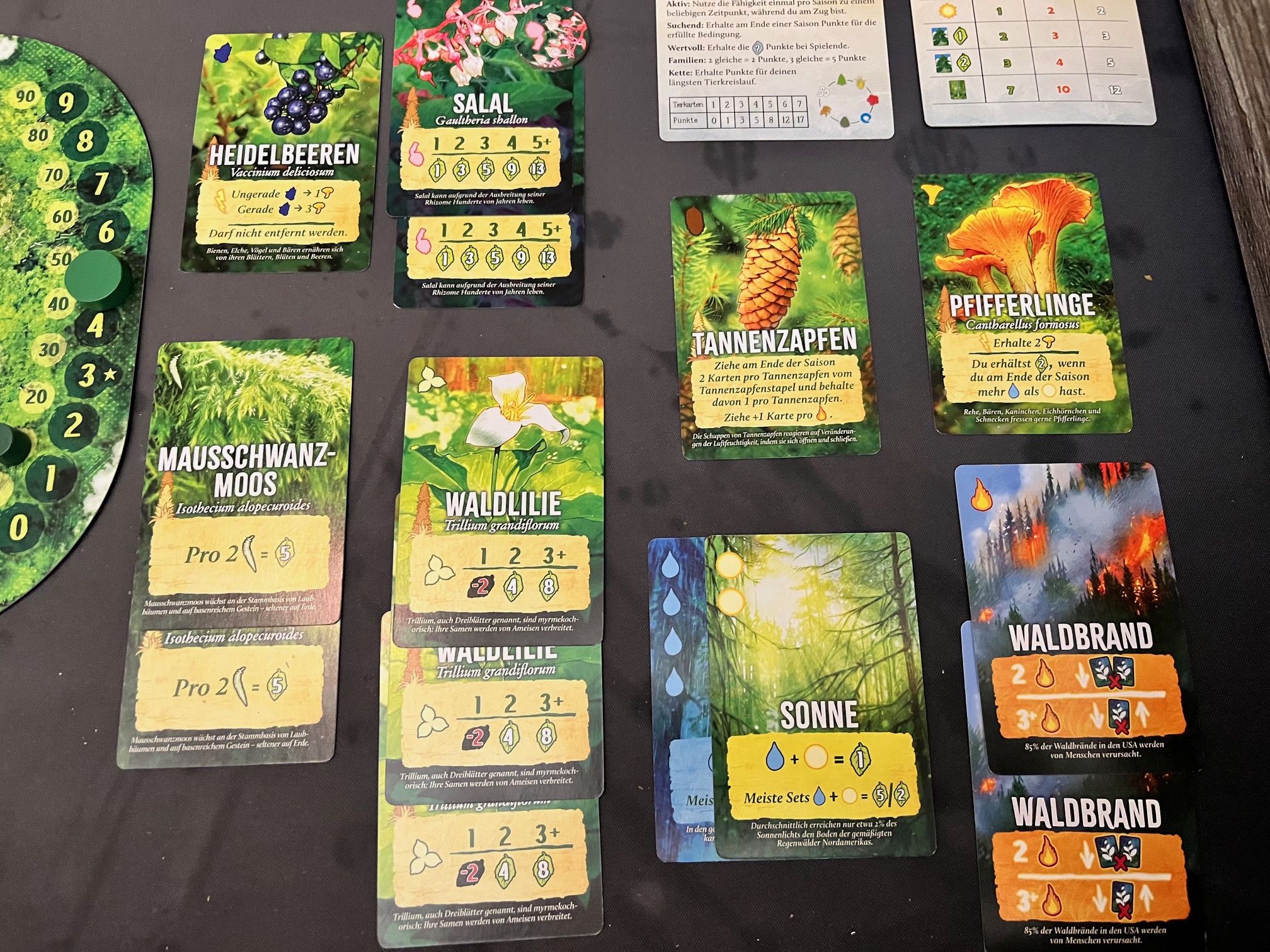 Am Ende einer jeden Saison gibt es eine Wertung der höchsten Bäume und auch alle Pflanzensets, die wir in dieser Runde gesammelt haben, werden ausgezählt. Auch die Wetterkarten beeinflussen Wertungen positiv, während Bedrohungen wie z.B. der Waldbrand negative Auswirkungen haben.