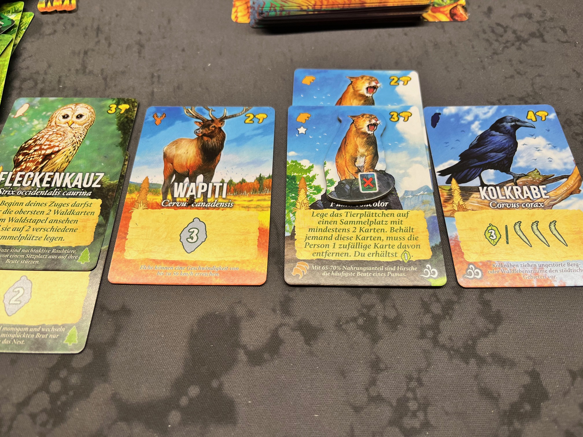 Bei all dem Material wird schnell auffallen: Irgendwas vergisst man doch immer in so einer Partie! Meist ist es, zu Beginn seines Zuges ein Tier anzulocken – das ist zumindest uns häufig geschehen.